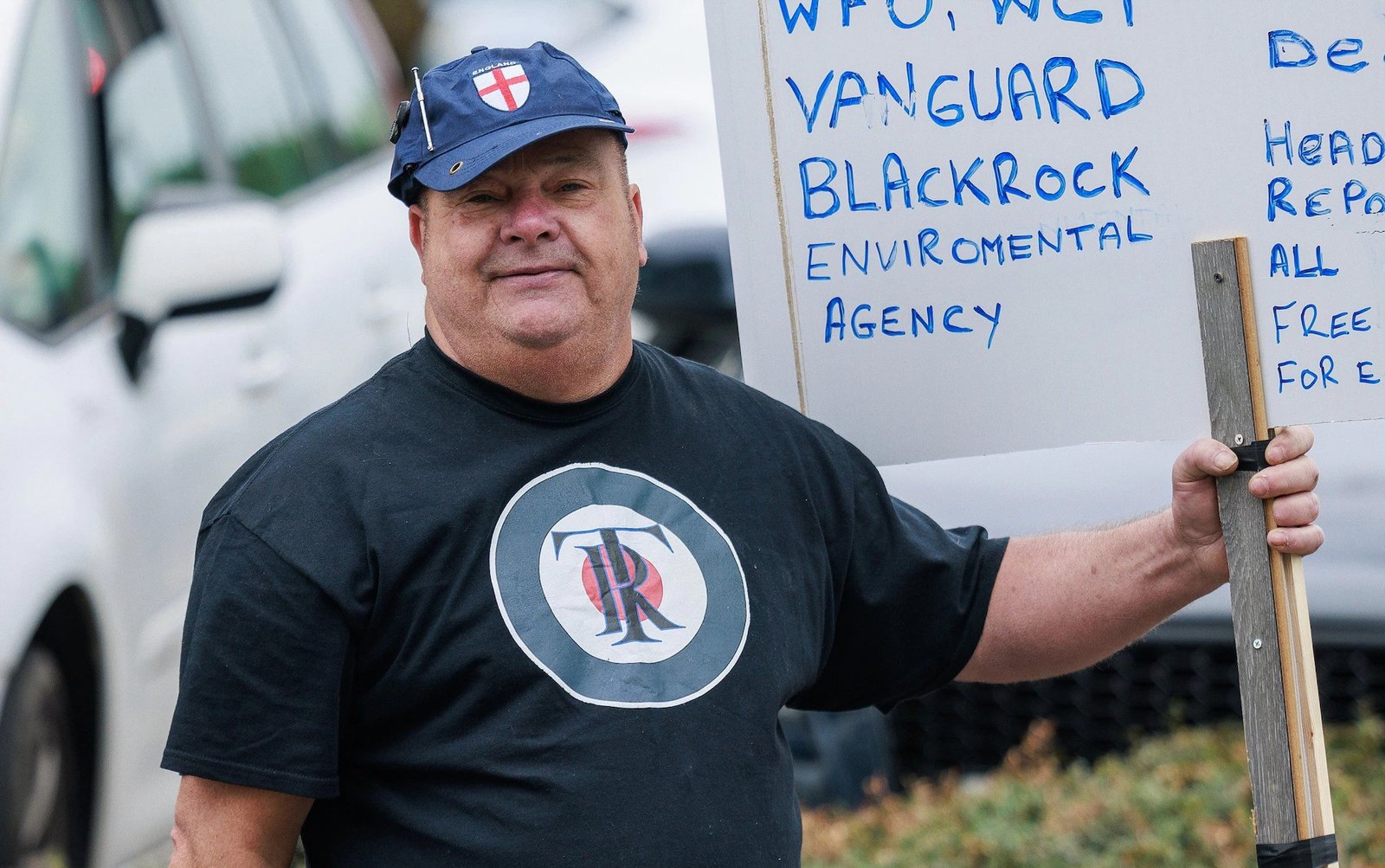 The man, identified as Peter Lynch, 61, had been a prominent figure during the riots outside the Holiday Inn Express in Rotherham. Witnesses and photographs from the events show him standing at the forefront of a large, agitated crowd, shouting phrases such as “scum” and “child killers” at police officers. He was also seen carrying a placard that accused members of parliament, the judiciary, the media, and the police of widespread corruption. His participation in the protests, which escalated into violent disorder, eventually led to his conviction and imprisonment.